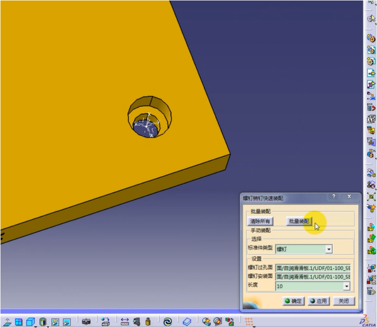 单件及多件快速装配通过定义过孔面及安装面,螺(销)钉自动安装到位。